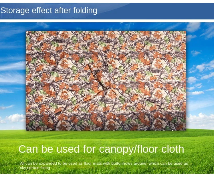 Multifunction camouflage raincoat, can be used as a raincoat, camping tent mat and awning.