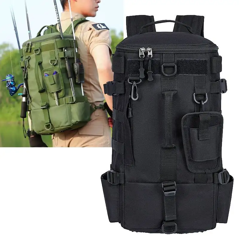 Fishing Rod Tactical Backpack Multifunctional Fishing Molle Tackle Lure Shoulder Bag Large Outdoor Travel Hiking Hunting Handbag